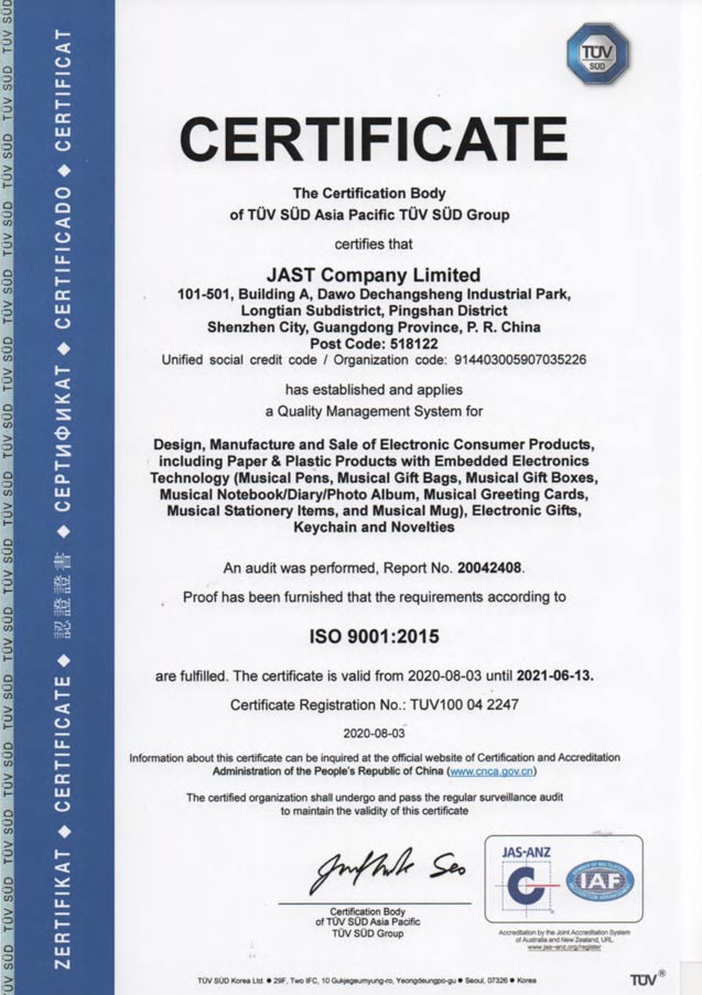 JAST Company Limited is a reputable gift and toy manufacturer founded in Shenzhen, China in 1995.